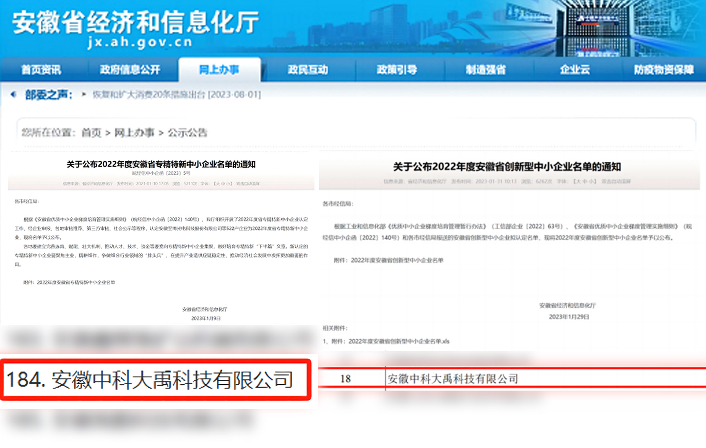 • 入選2022年度安徽省專精特新中小企業 入選2022年度安徽省創新型中小企業名單